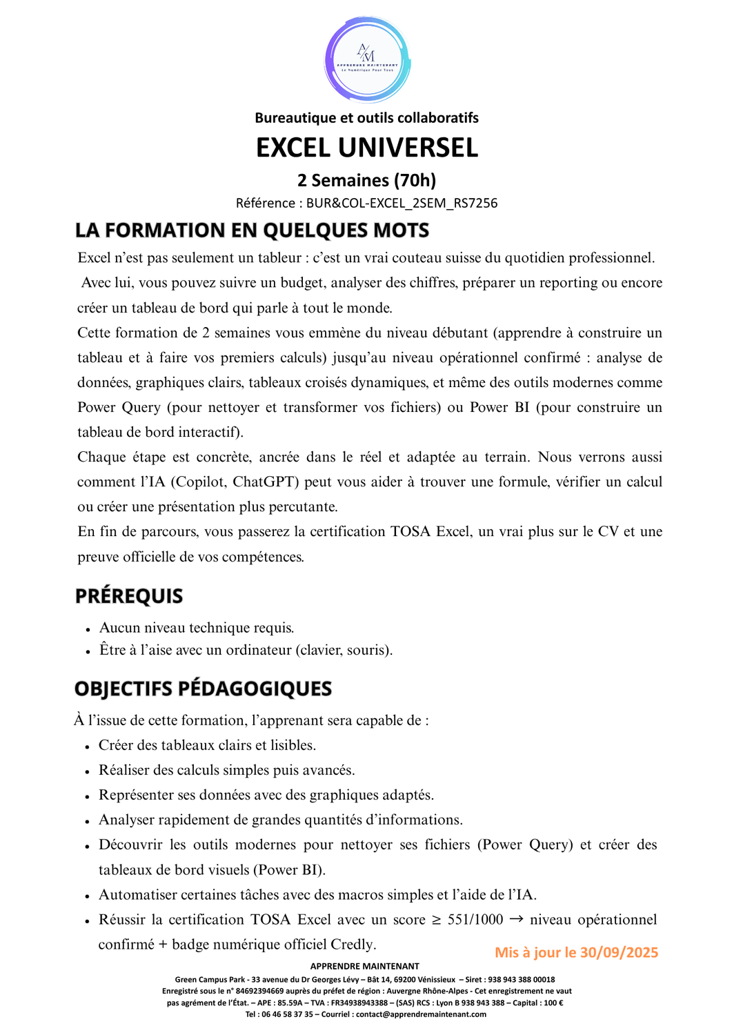 PARCOURS EXCEL UNIVERSEL _70h